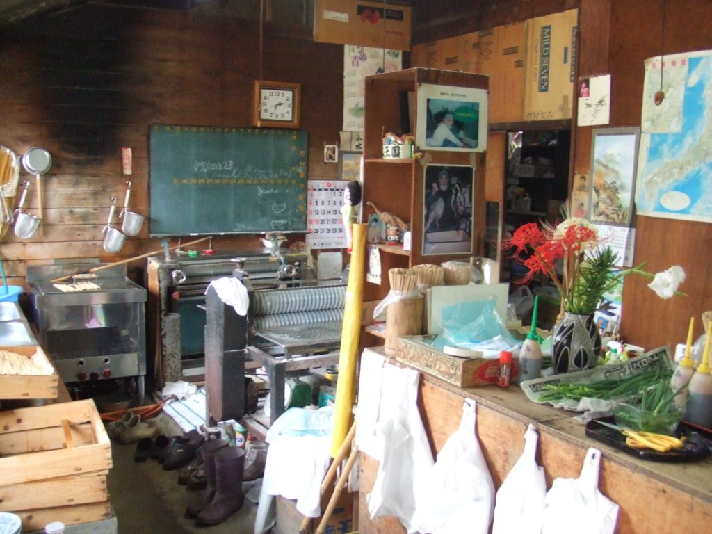 いくつかのうどんやを巡ろうと考えいてる中で、この「うどん本陣山田家」が今回、絶対来ようと決めていたところだ。家族全員がファンの番組『水曜どうでしょう』で幾度と登場する店なのだ。テレビでは断片的にしか分からなかったが、実際に行ってみると構えが凄い・・・もともと造り酒屋らしく趣があるのだが、真っ先に「うわっ、でか!(とにかく大きい)」「うわっ、ひろ!(とにかく広い)」と感じる、どっしりとした威厳ある構えだった。