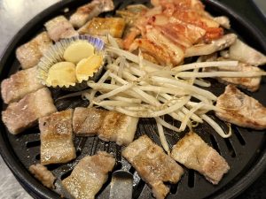とは言っても、気分はすっかり焼肉、どこか近くにないものかと服部駅から国道176号線に向かって歩いた。すると、国道までの道のり、右手の路地に「焼肉」の赤いのぼりを目にした。