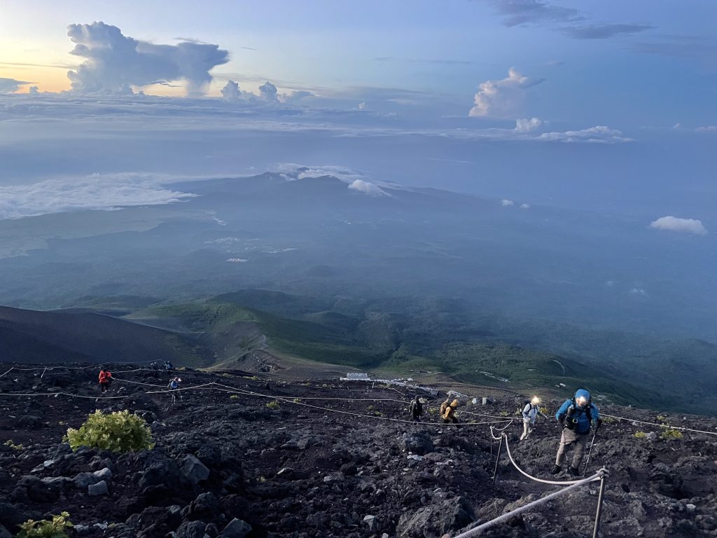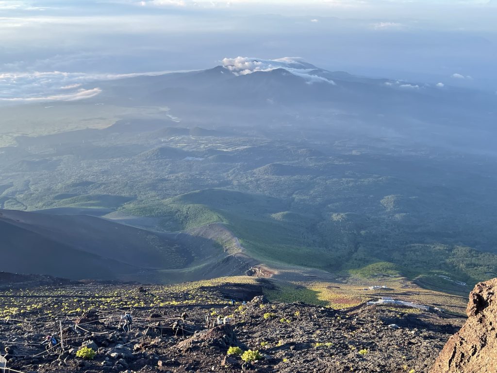 登り進むにつれ明るくなり、周りの状況がわかり始める。雲がかかることもなく、平野部まで広く見渡せる。