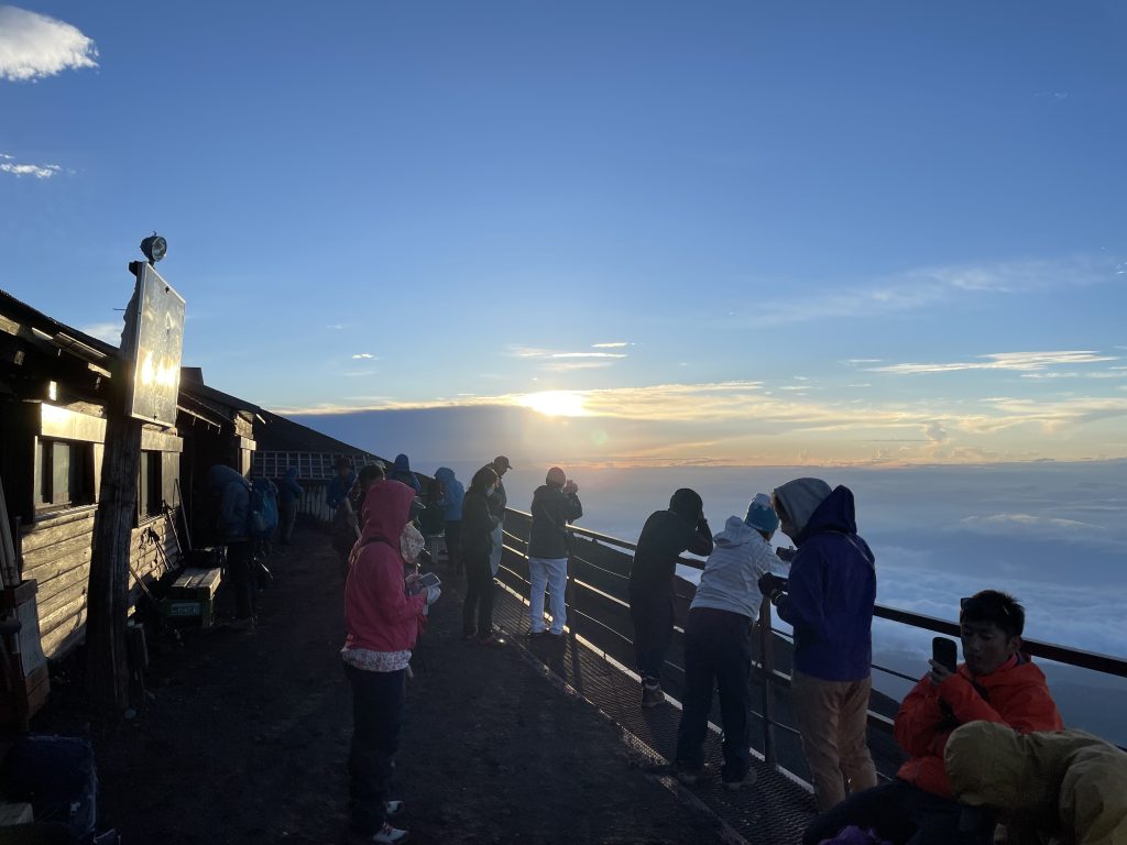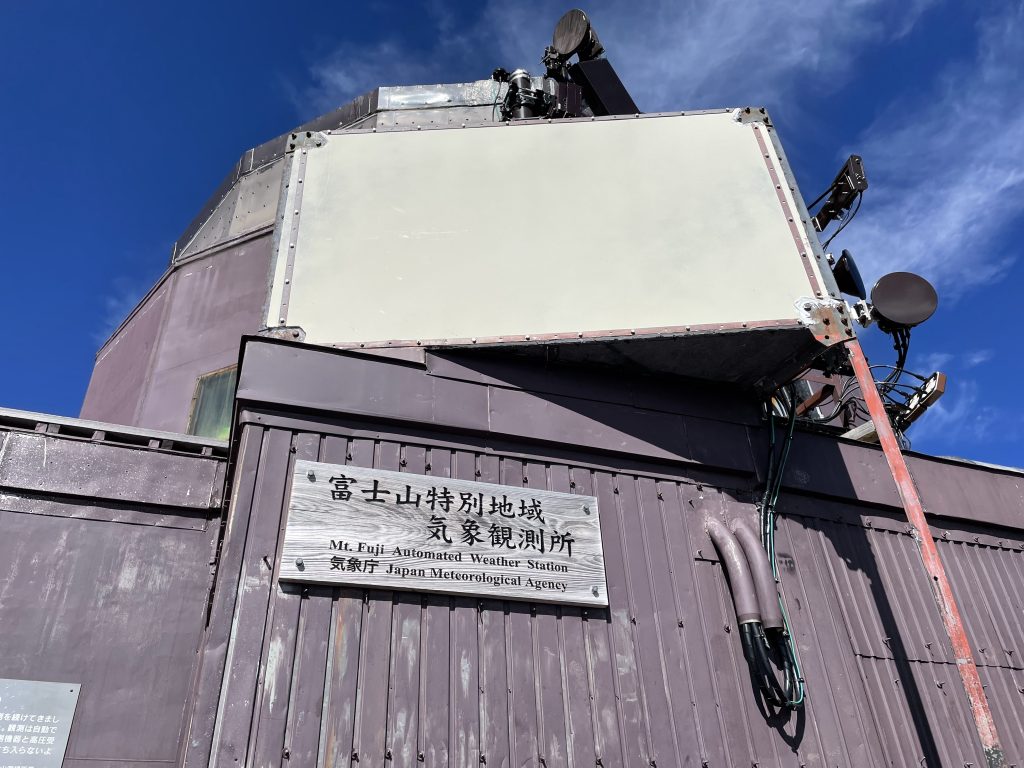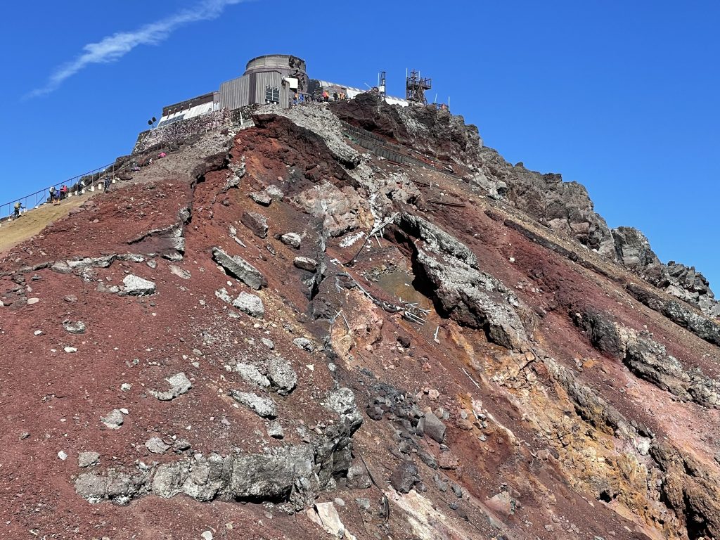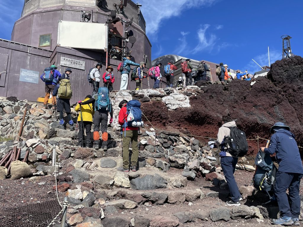 気象観測所の前に行列…頂上でみんな写真撮影するでしょ、なのでその順番待ち。