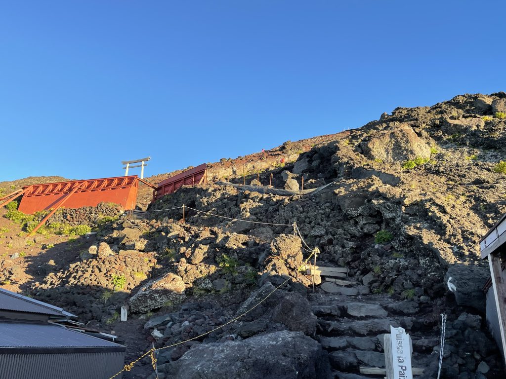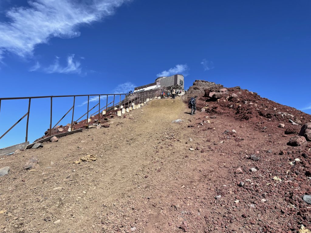 頂上富士館の裏手にまわると、剣ヶ峰が現れる。ここを登れば3776mだ。