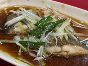 分厚いかれい、食べ応えありますな。しっかり味が染みているけど、しつこくないのでつい箸が伸びる。