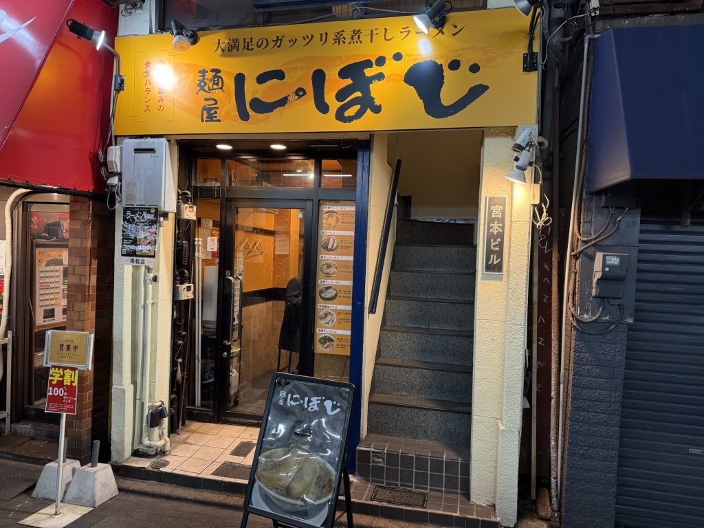 駅から線路すぐ横の道に入り少し進んだ先。ラーメンのお店が2軒並んでいるところ。