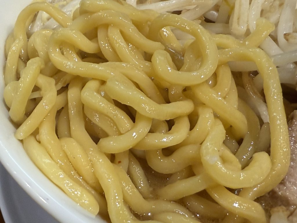 中太麺はつるっと滑らかな舌触りで噛むと小麦の香りと甘さが口に広がる。ワシワシタイプでもちっとシコシコ。