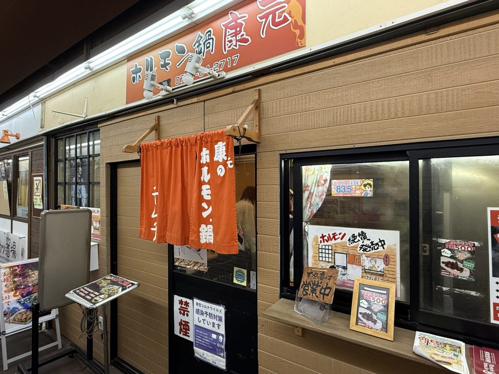 清荒神駅北側、改札口を出てすぐ入口がある清荒神市場。16店舗ほどが軒を連ねる昔ながらのアーケード商店街。この中にあるホルモン鍋 康元の暖簾をくぐりますよ。