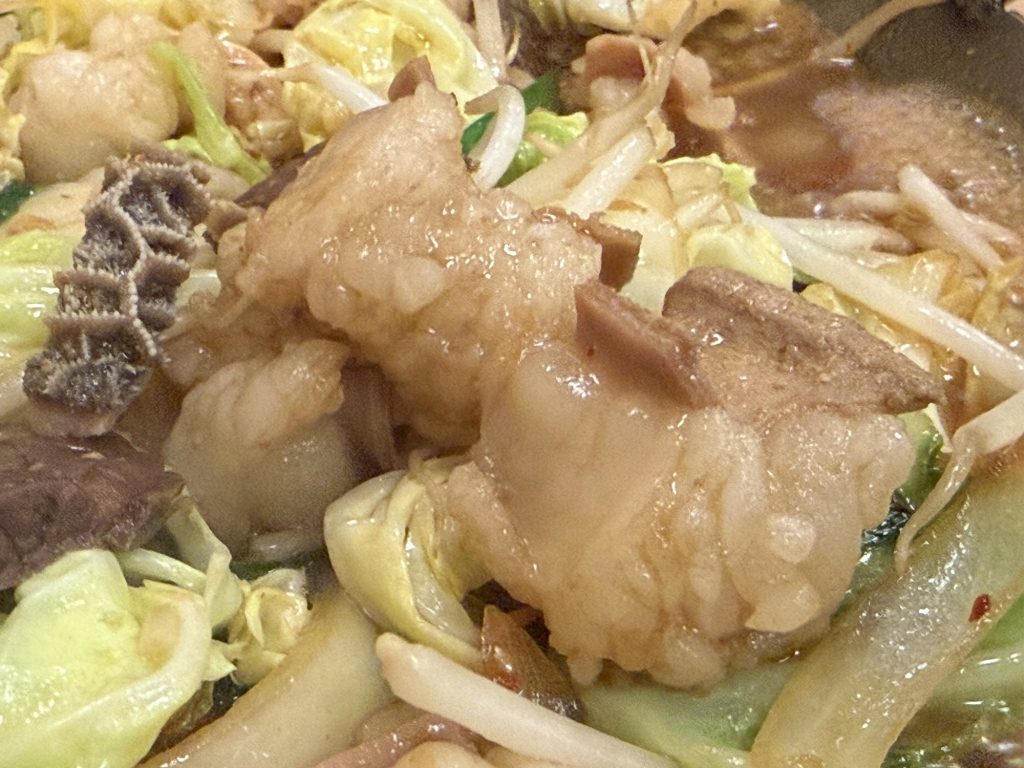 そろそろいいかな…ホルモンもたっぷり入ってますよ。ぷりぷりの小腸を筆頭に、ハチの巣やフワなどですな。ホルモンやっぱり美味いなぁ。石橋の時と変わってないや。お母さん曰く、ホルモンは屠殺場から厳選して直接仕入れているんだよね。
