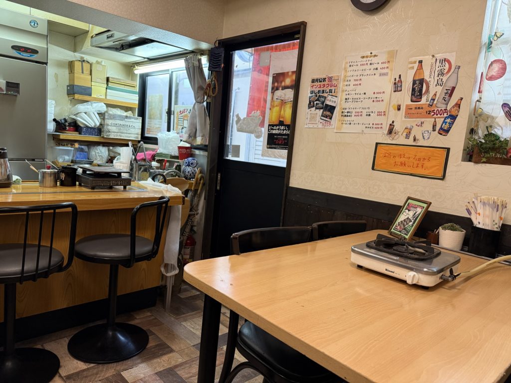 店内はカウンター3席に4人掛けテーブルが2卓。初詣に清荒神を参詣し、宝光亭にておでんで一杯やった後のハシゴなのでサクッと飲みで。