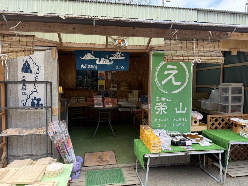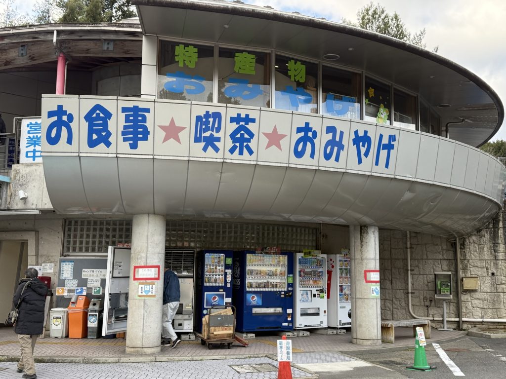 参詣を終え最初の鳥居まで戻って来た。玉置神社前には玉置山 栄山があり、お土産等を扱う売店、店内で食事も出来るようですな。うどんでも食べて温まりたかったが、店内いっぱいで他のお客さんが待っていたので断念。そのまま山を下りることに…