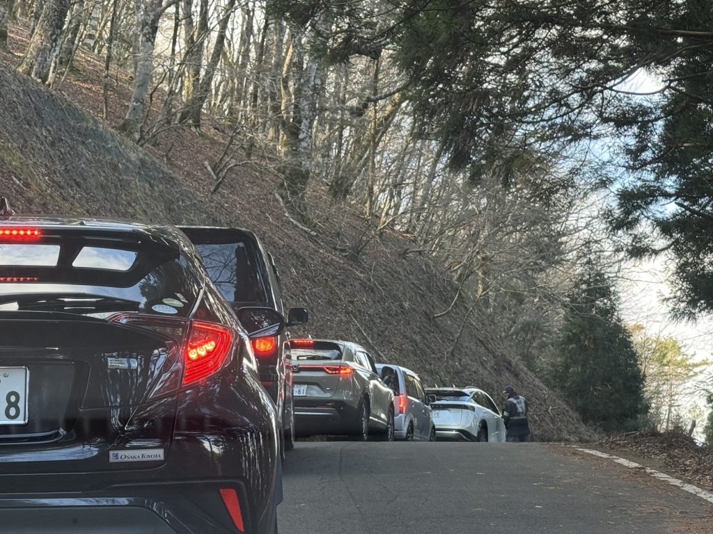 で、神社近くまで来たと思ったら、まさかの車の列。神社の駐車場がいっぱいで待ちが発生しているのよね。じゃあ、結構たどり着いている人多いんじゃん(笑)
