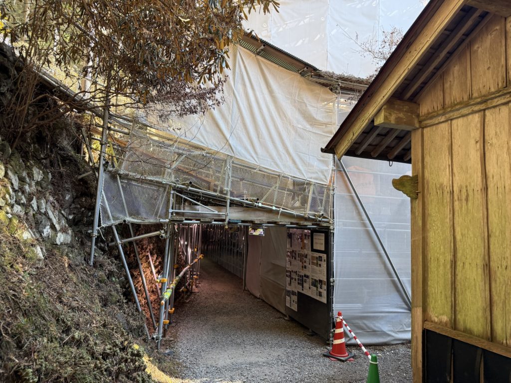 しっかりと御本殿でお参りを済ませ、そのまま右手に進む。令和の大改修で社務所が工事中だったが…