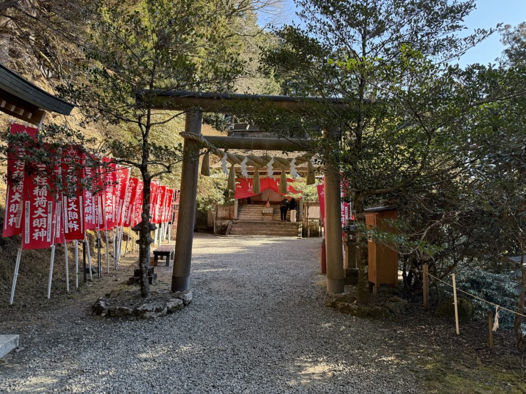 そして、その先に手水舍と大きな鳥居が現れた。着いた…さっきの分かれ道からでも15分くらいかかったかも。