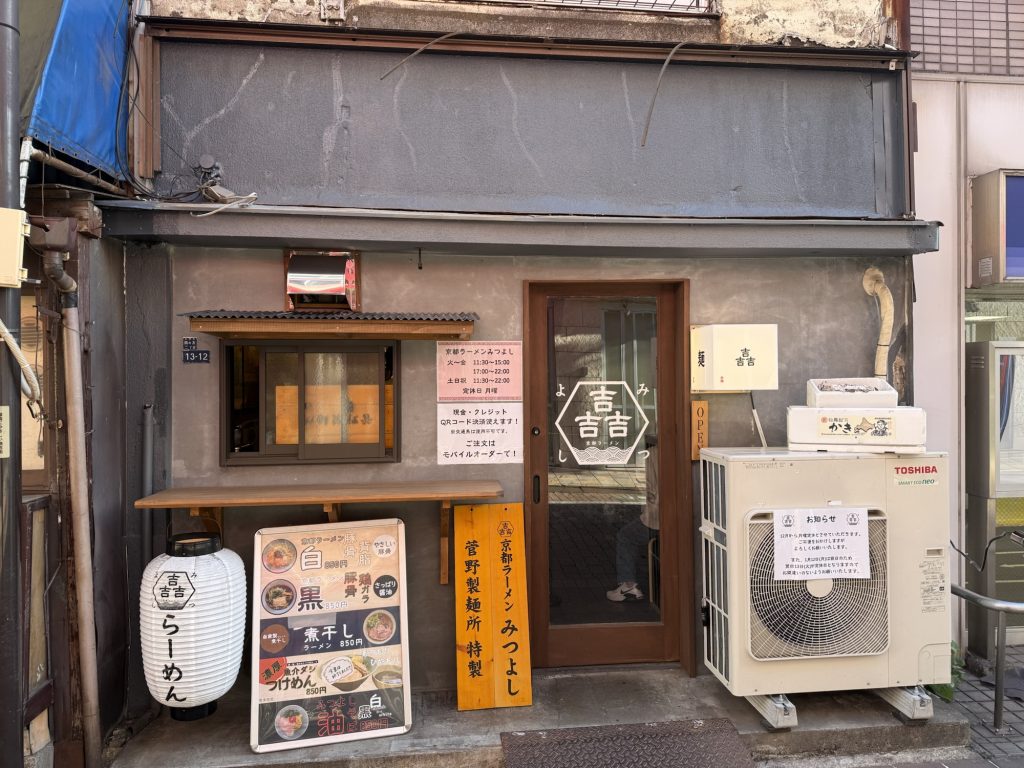 駅の南側にある商店街、鵜の木平和会。この通りを歩いていたらたまたま目に入ったお店、京都ラーメンみつよし。