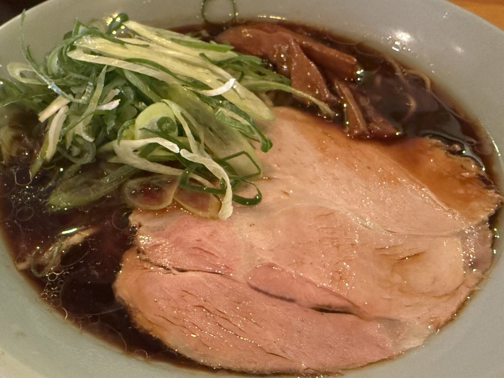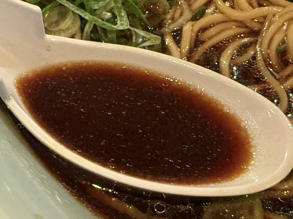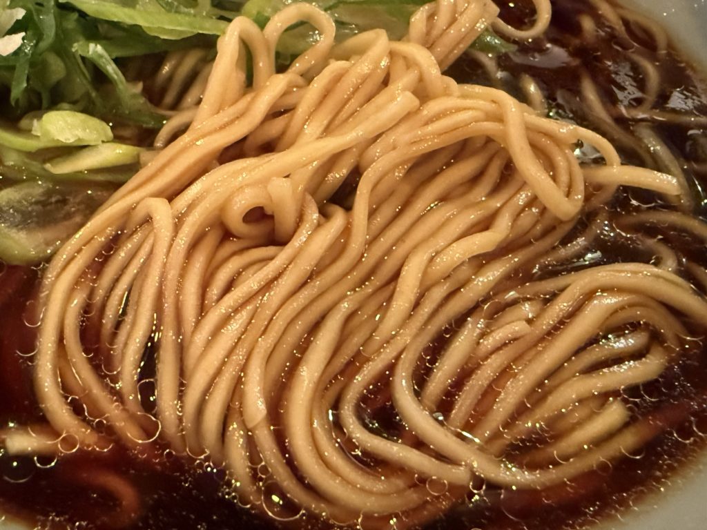 スープは鶏がら豚骨、見た目に反して甘味すらある穏やかな味わい。ねぎの香りがよく出てるわ。