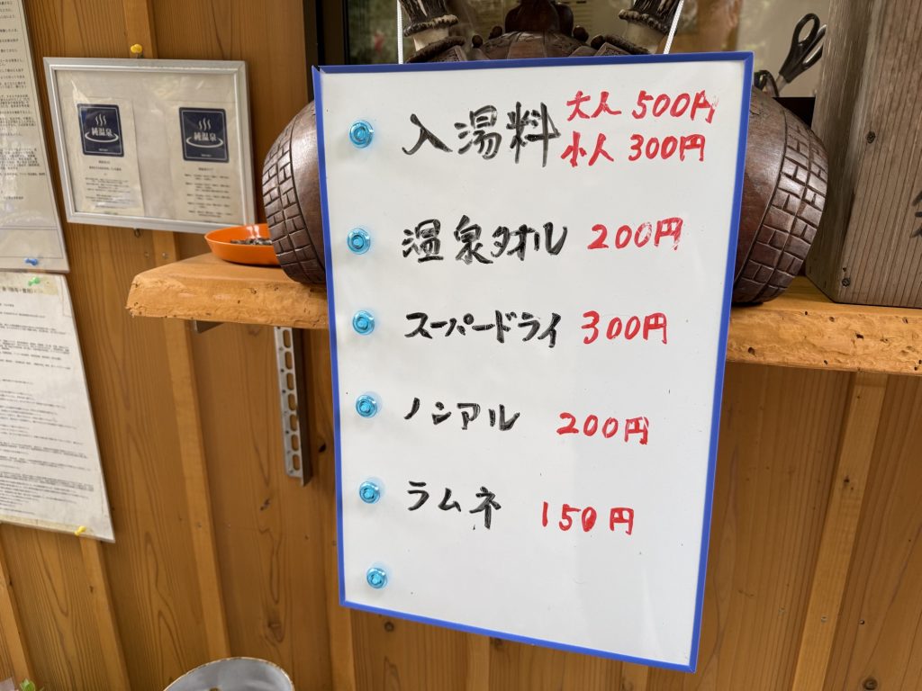 入湯料は大人500円(税込)、記念に上湯温泉のロゴが入った温泉タオル買っとこう〜