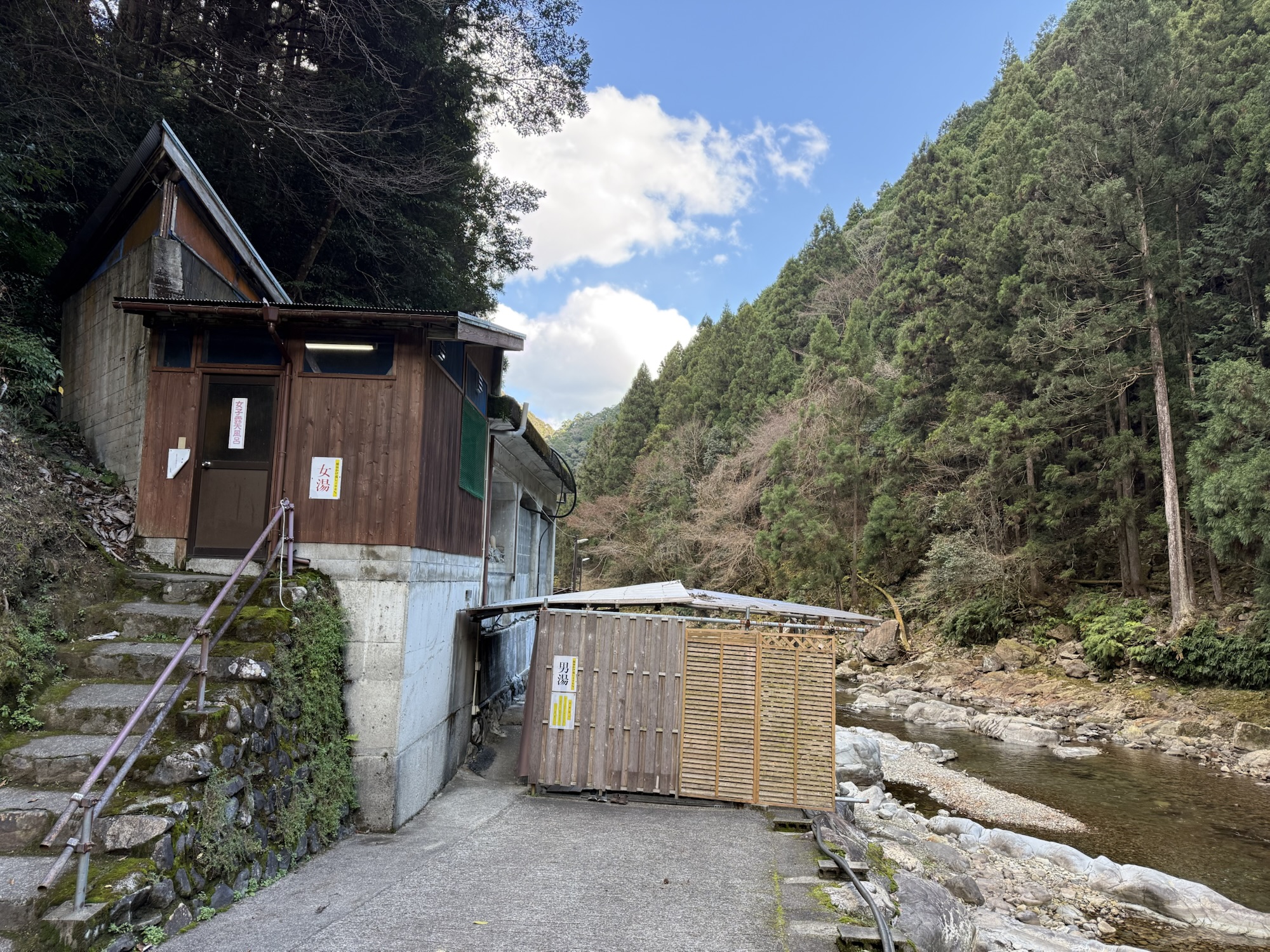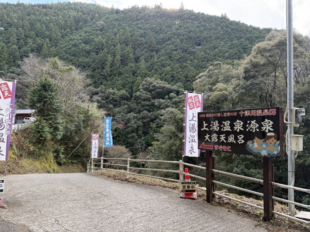 とりあえず玉置神社から山を下り、国道168号線まで戻って来た。十津川温泉 ホテル昴の少し手前のところで、今度は上湯川沿いに道を進める。国道から10分くらい走ったところ。