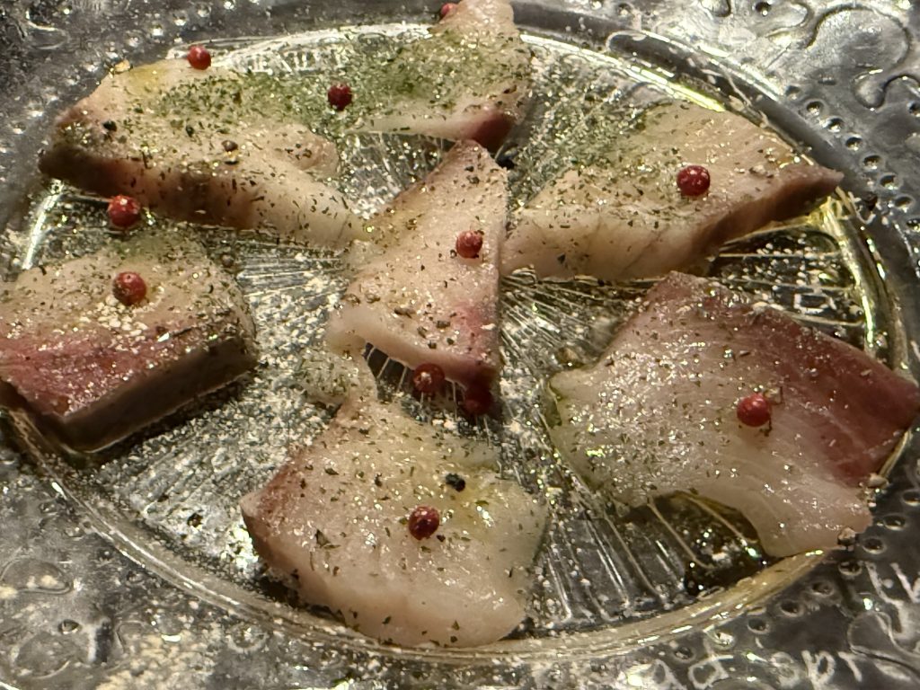 愛媛県産ブリのカルパッチョ(980円税込)。