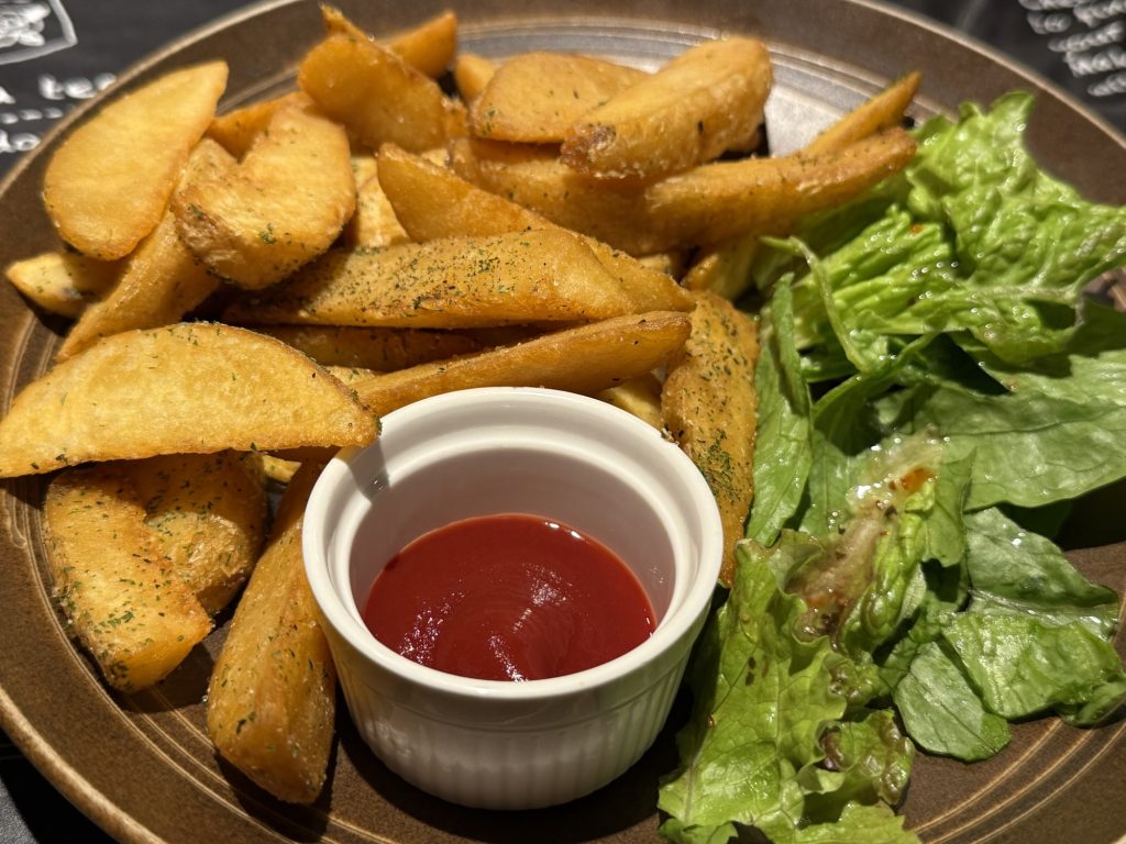 ホクホクお芋の味がしっかり感じられるウェジカットフライドポテト(600円税込)も良き。