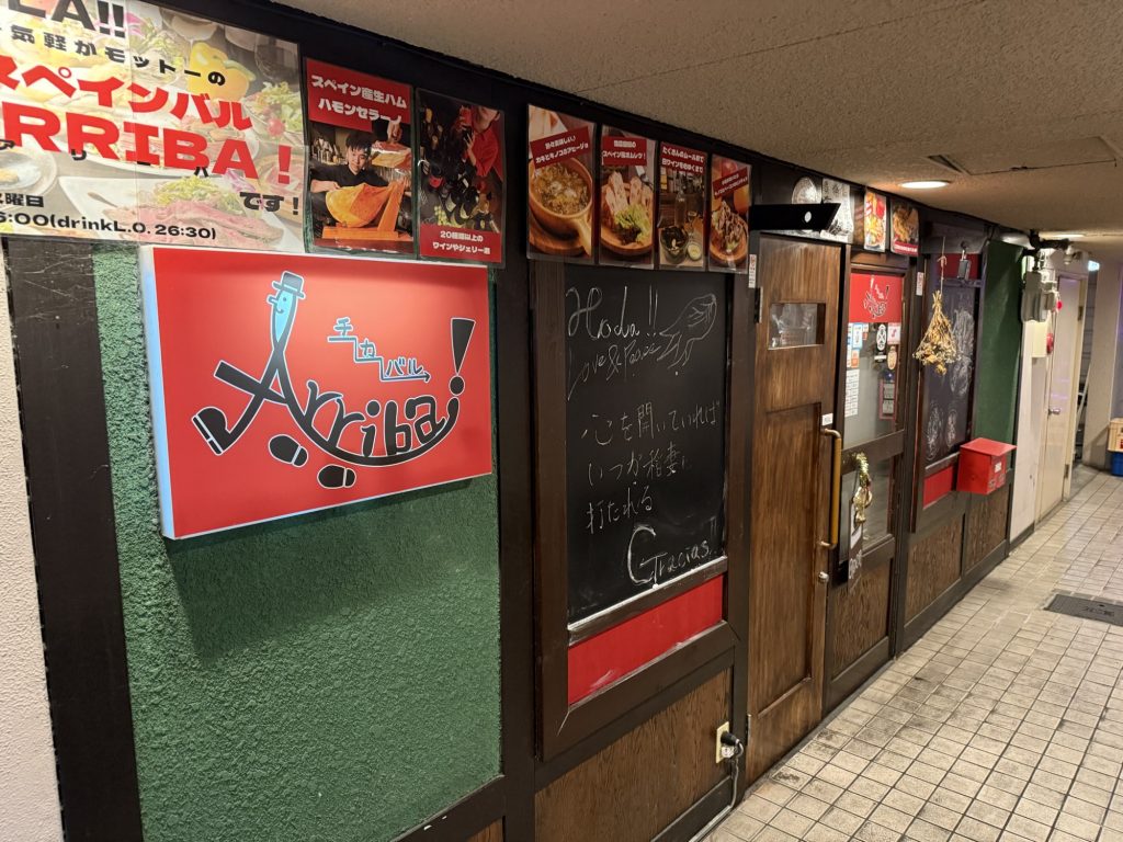 石橋阪大前駅東側、改札を出てそのまま直進。高架下まで来たら左に折れてまもなく。焼鳥の秋吉を過ぎたお隣、セントラルマンションの地下にあるお店、Arriba!(アリーバ)。