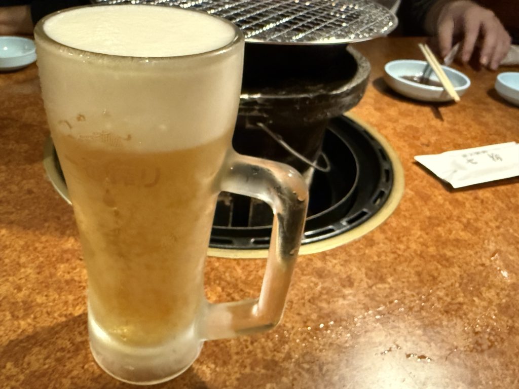 ようやく順番が回って来て、案内されると…あ、こういうオープンスタイルなのね。普段、4人掛けのボックス席的なのが多いから、小上がりの広ーい座敷でみんなでガンガン肉焼いてます光景が新鮮。ちなみに、今回はたまたま座敷だけど、ボックス的なテーブル席も結構なキャパであるよん。