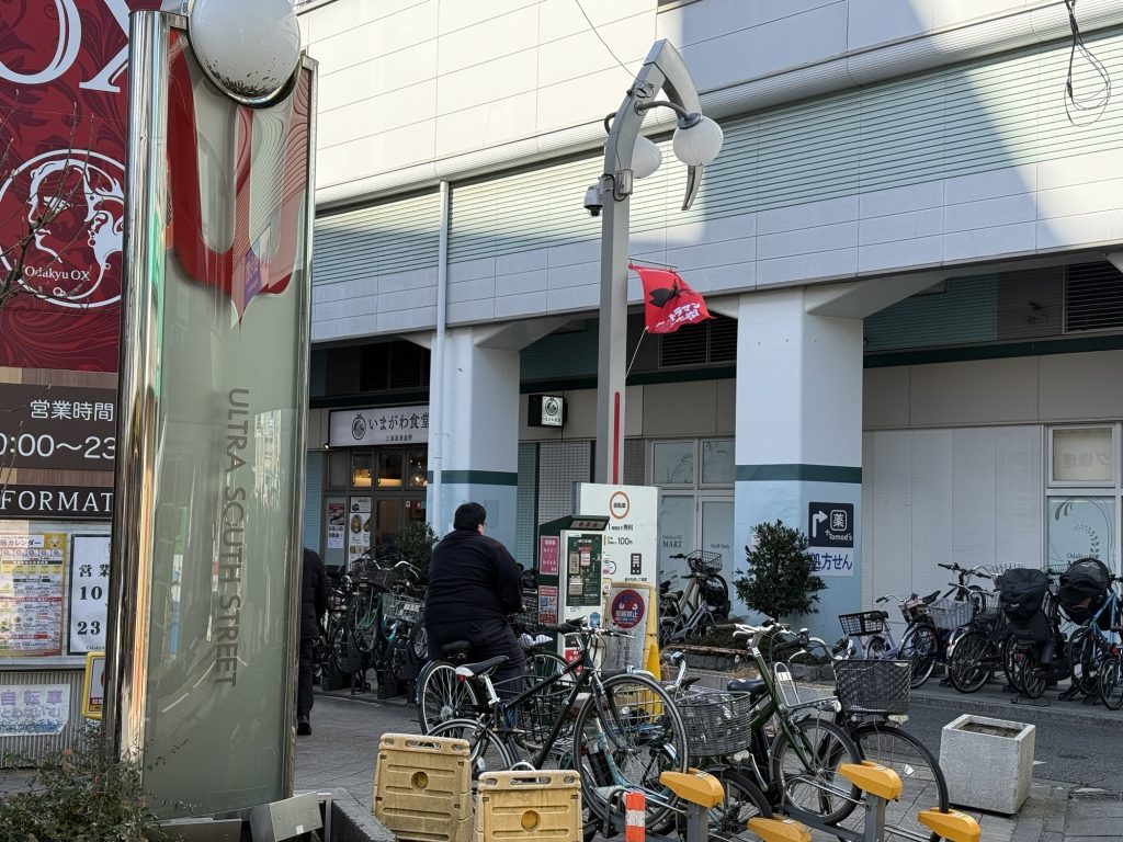 駅南側、ウルトラマン商店街3つ目の商店街 祖師谷南商店街ですな。駅前にはウルトラマンのモニュメントサイン。