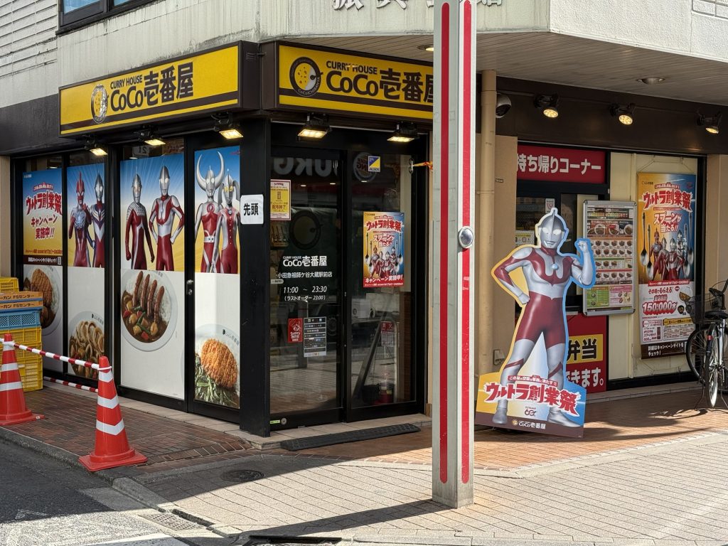 たまたまなんだけど、今年7月でウルトラマンシリーズは60周年記念を迎えるんだよね。CoCO壱番屋がコラボでキャンペーンやっているから、もう店先がウルトラマン炸裂(笑)