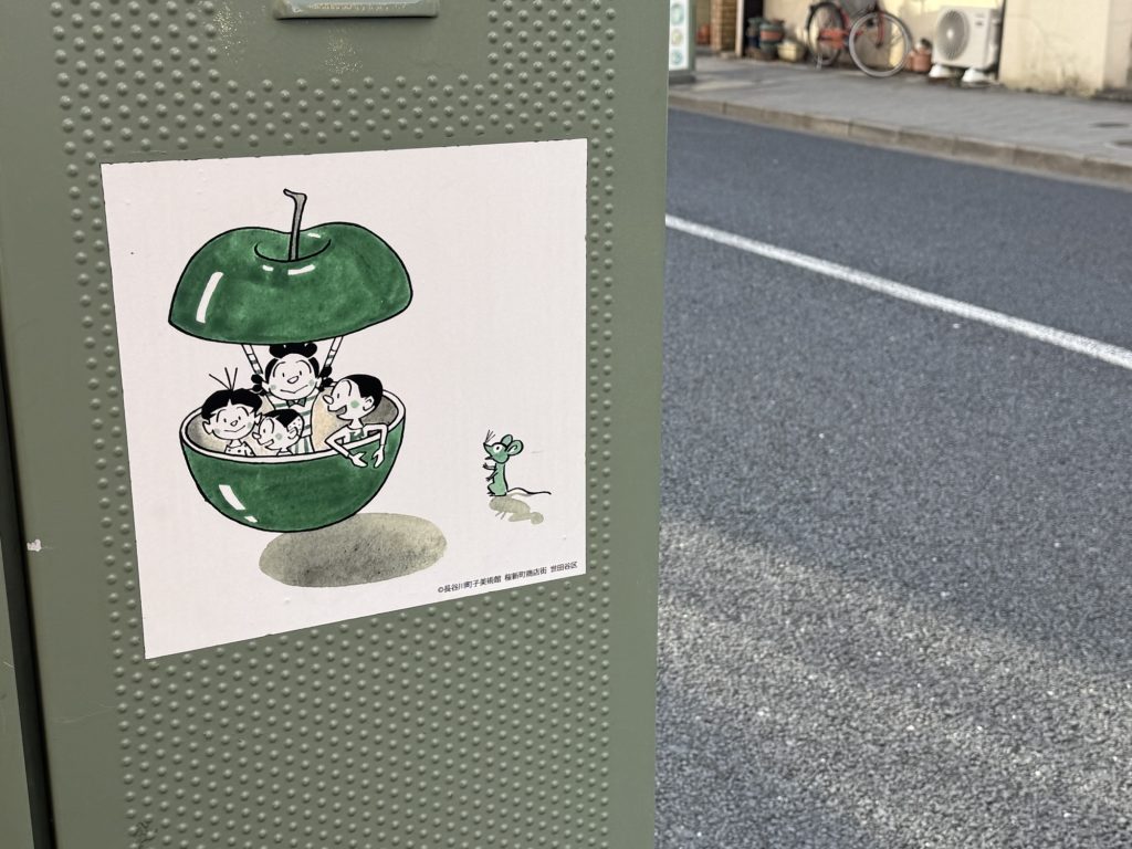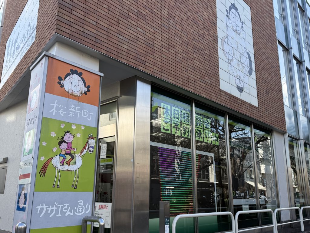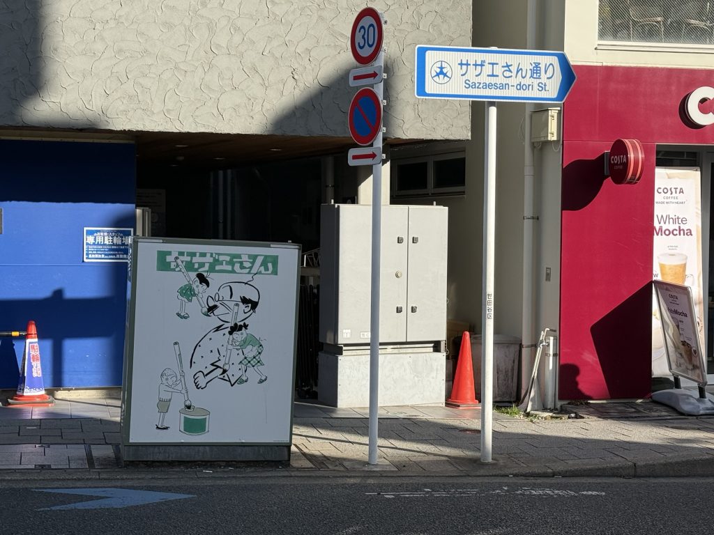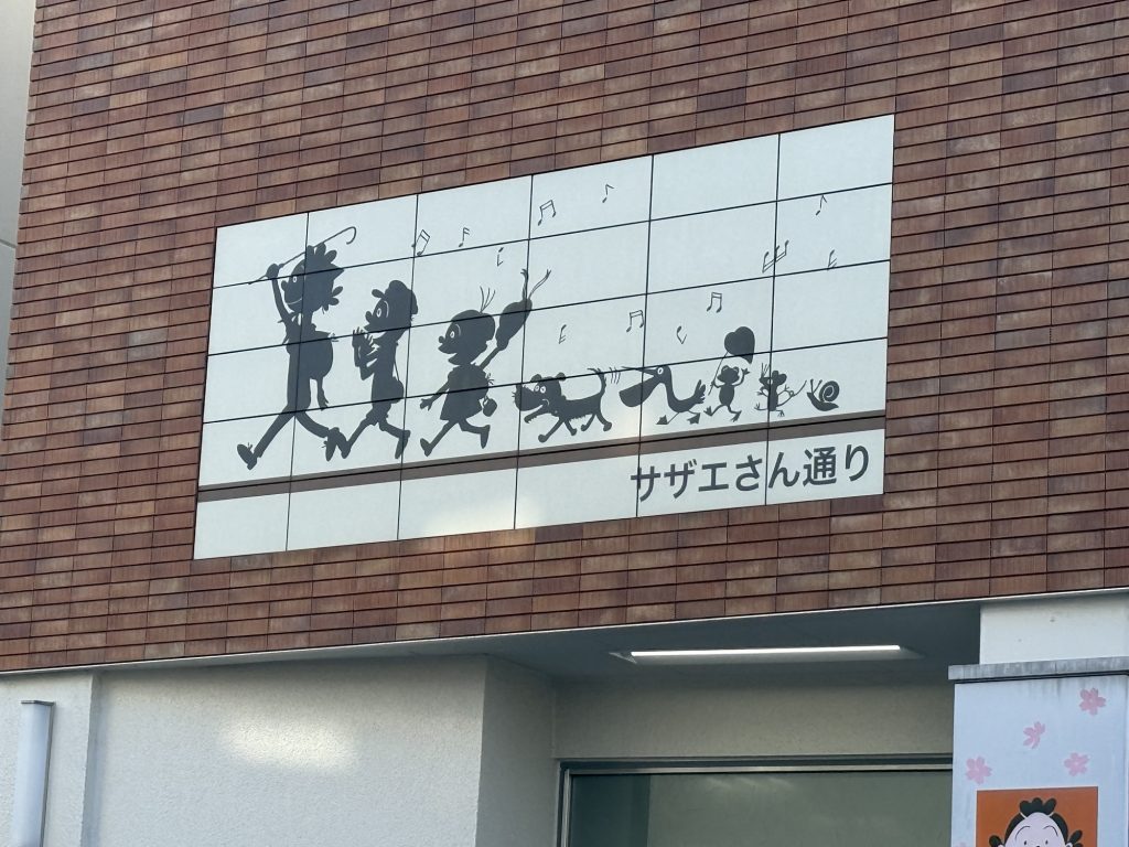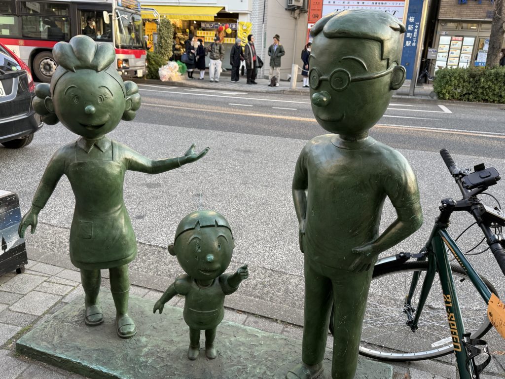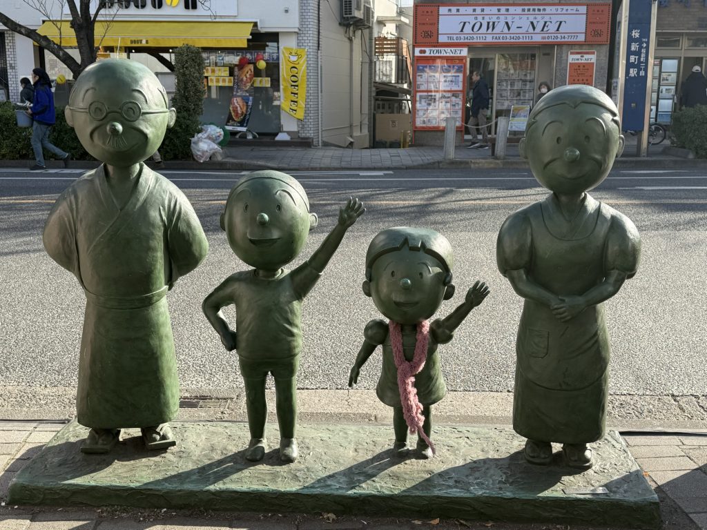 サザエさんですな。桜新町は、漫画『サザエさん』を描いた長谷川町子氏が住んでいた町なんだよね。すぐ横には、サザエさん一家の銅像もあるぞ。