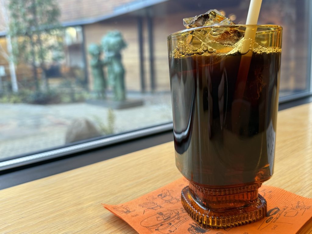 見学を終え1Fの喫茶部へ。入館チケットを購入した際に割引チケットももらったので、アイスコーヒーでもいただきましょうか。