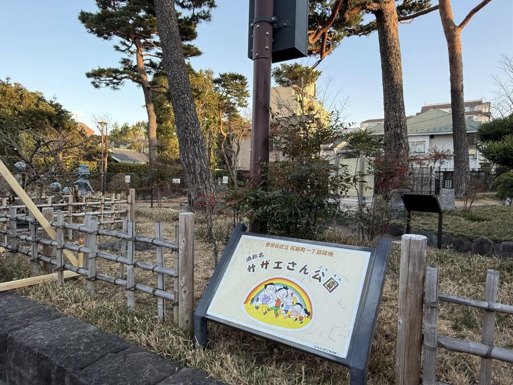 長谷川町子美術館の隣には、世田谷区桜新町一丁目緑地。通称、サザエさん公園。ファミリーな感じかと思ったらだいぶと和の公園ですな。