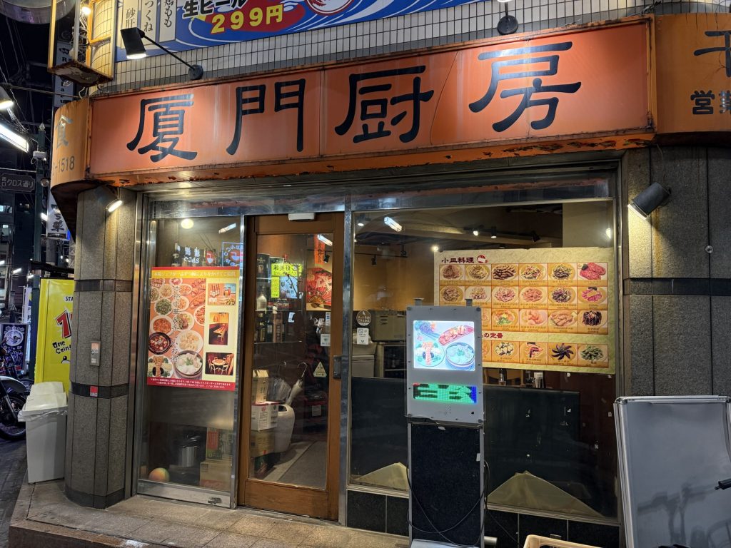 JR蒲田西側、駅前のニューカマタビルの右側の道を入り、最初の四辻角。蒲田西口クロス通り商店会にある厦門厨房で夕食。