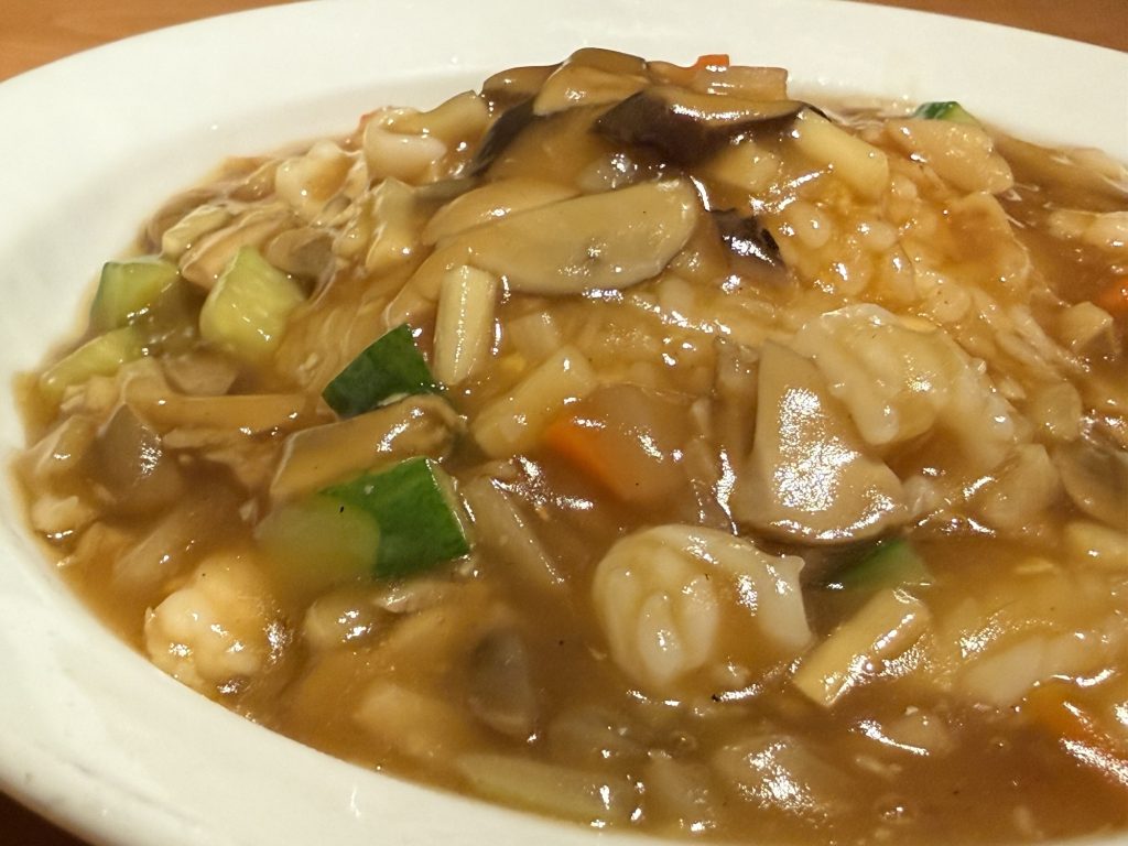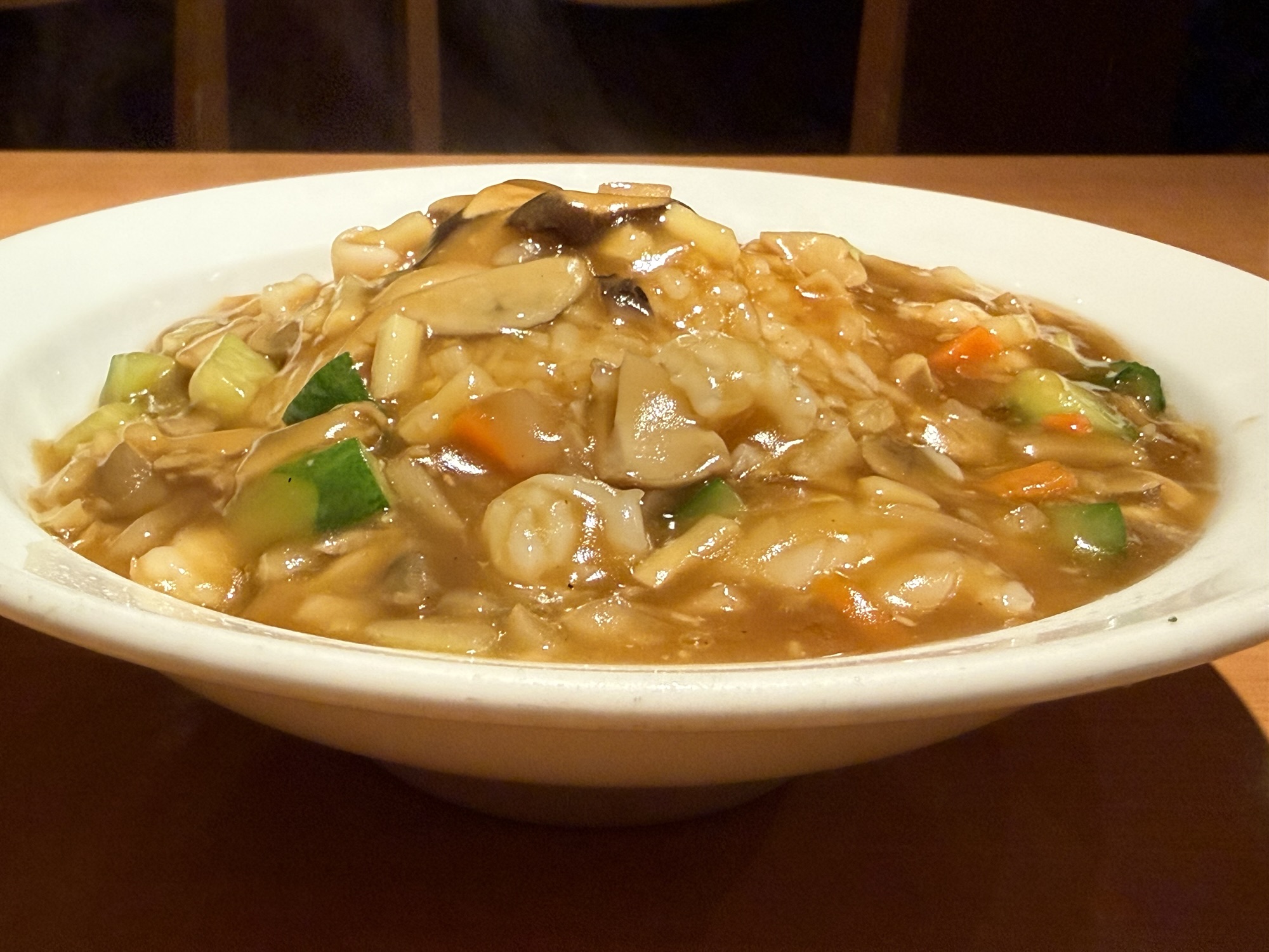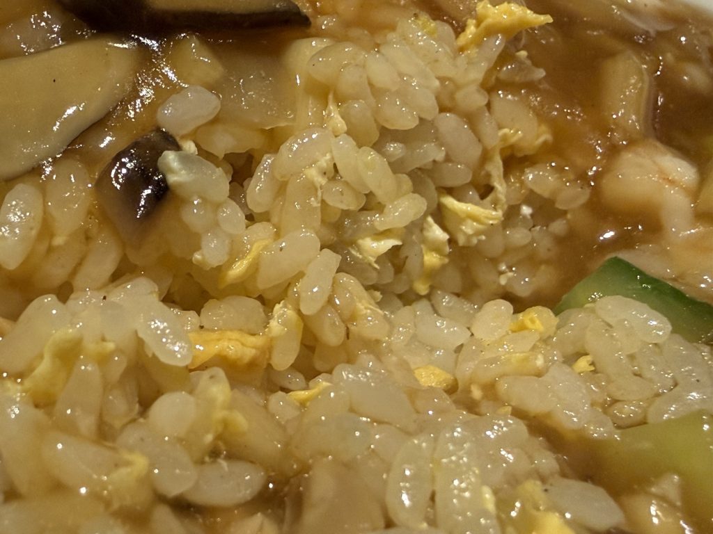 醤油ベースの餡掛けなんだけど、なかなか濃厚な味わいが美味し。玉子と炒めた炒飯の上にたっぷりと餡がかかっているんだけど、この炒飯がそもそもぱらぱらでいい感じ。