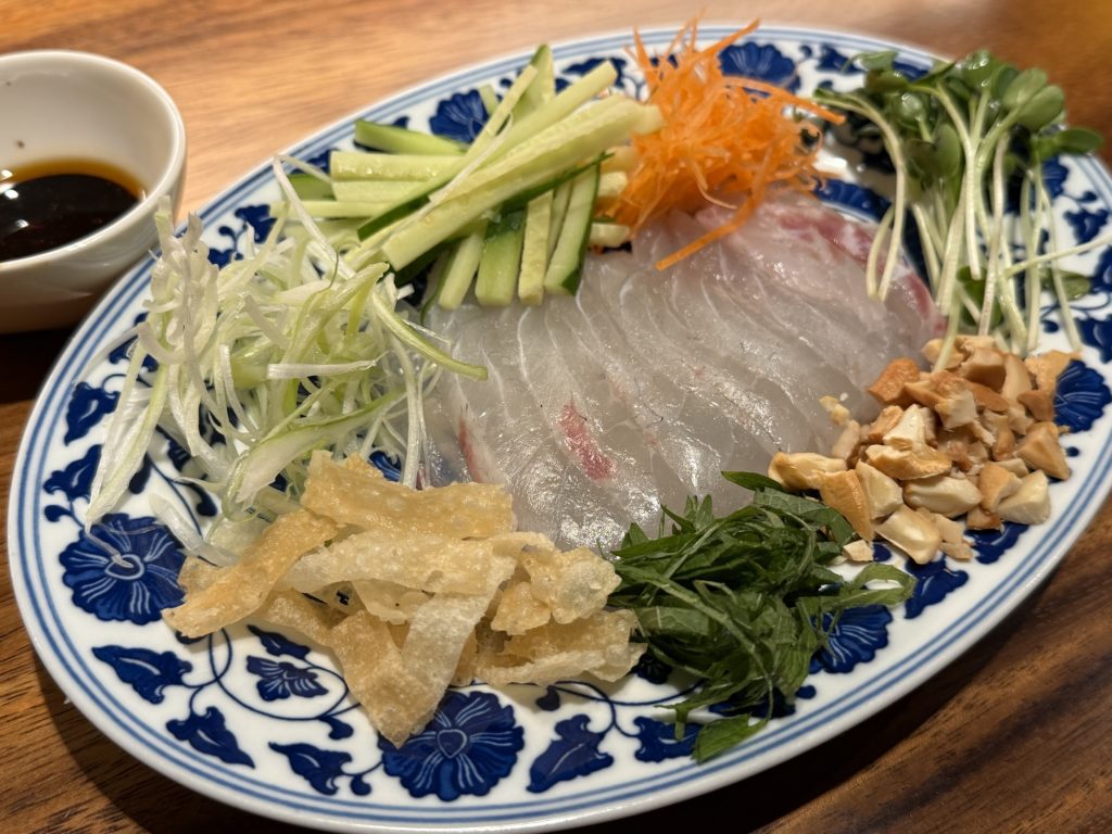 まずは真鯛の中国風お刺身(900円税込)を。