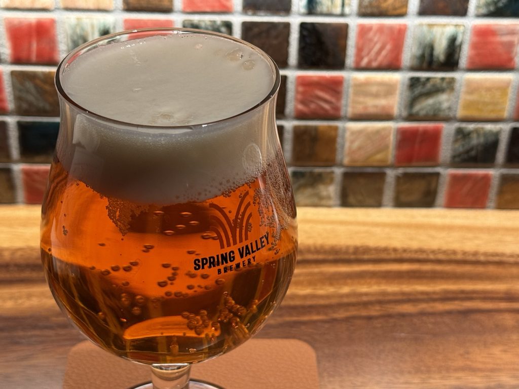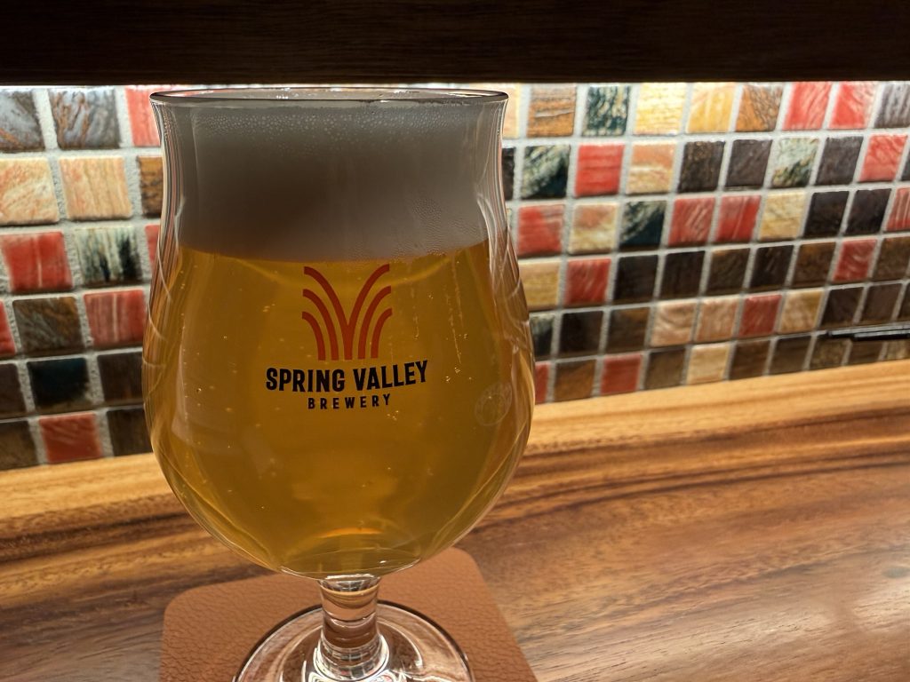 SPRING VALLEY BREWERY シルクエール白 ウィートエール(550円税込)。爽やかであっさりだけど香りがいいな。