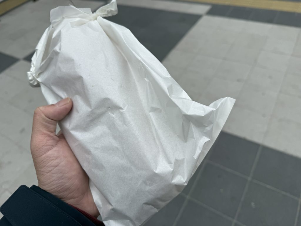 すれ違う人は、何やら白い包み紙を持っている。食べ物のようだけど…