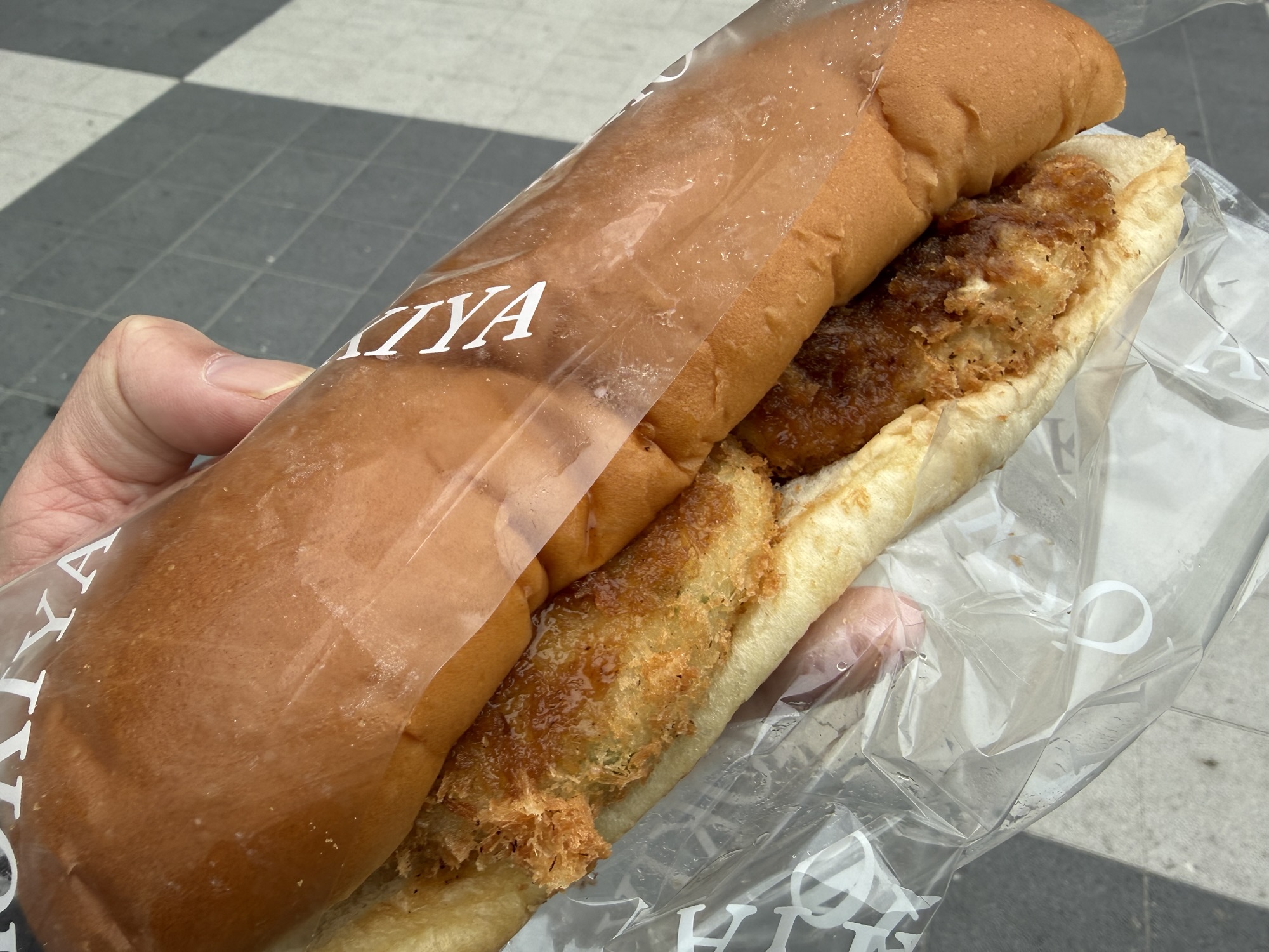 さて、袋から取り出すと…やっぱりでかい(笑)これは1人で食べるやつなんか?ま、コロッケが2つ挟んであるだけでもう2人前的な(笑)