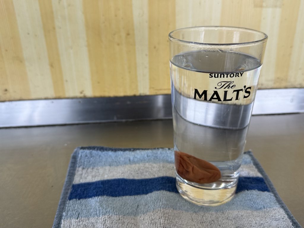 激寒の中歩いて来たので、温かいものを…梅お湯割り(500円税込)をいただきましょうか。