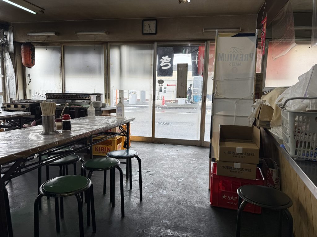 店内はカウンター5席に、6人掛けの長テーブルが10卓ほどかしら。