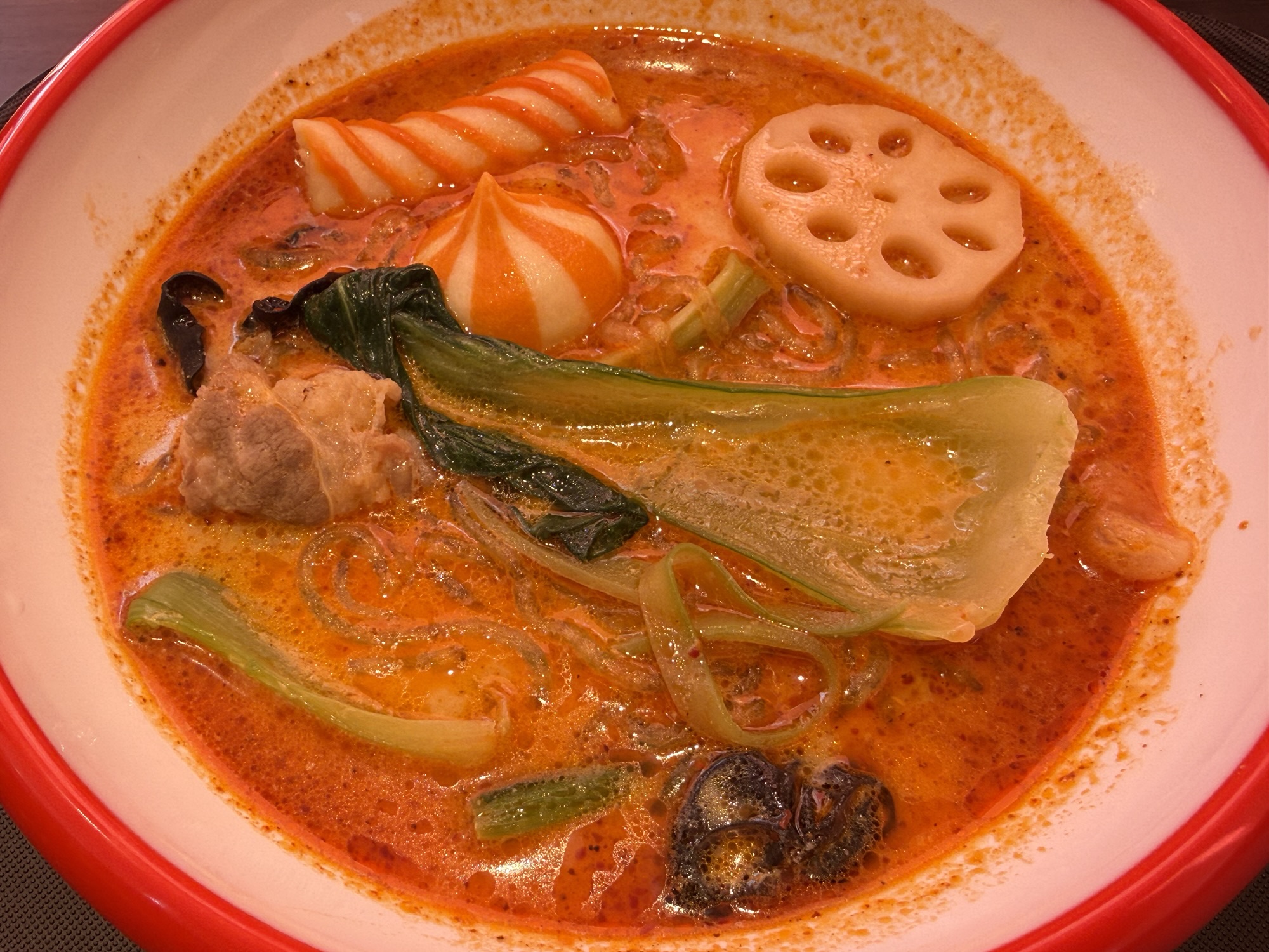 黒毛牛骨湯と書いてあるが、牛骨スープがベース。濃厚でしっかりコク・旨味がありますな。それでいて香りや味にクセがなく後味あっさり。栄養骨湯ともあるけど、確かに豚よりも脂分も少なくヘルシーだよね。