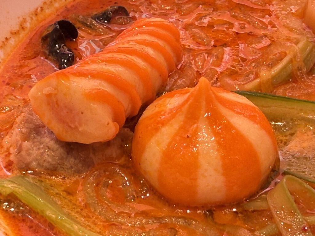 あと、麻辣湯といえばビジュアル的につい手にとってしまうこの蟹団子。プリンとした弾力と中の餡がとろっとかに風味。これをやたら入れている人もいたな(笑)