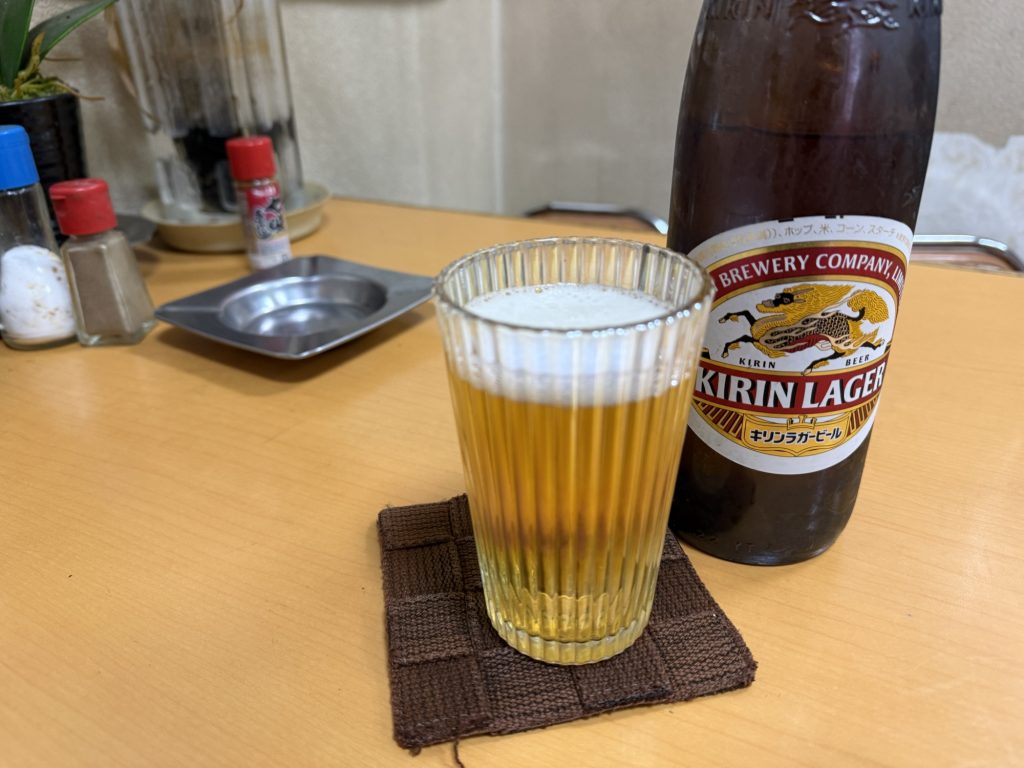 喉乾いた…瓶ビール(大瓶650円税込)をいただきましょうか。