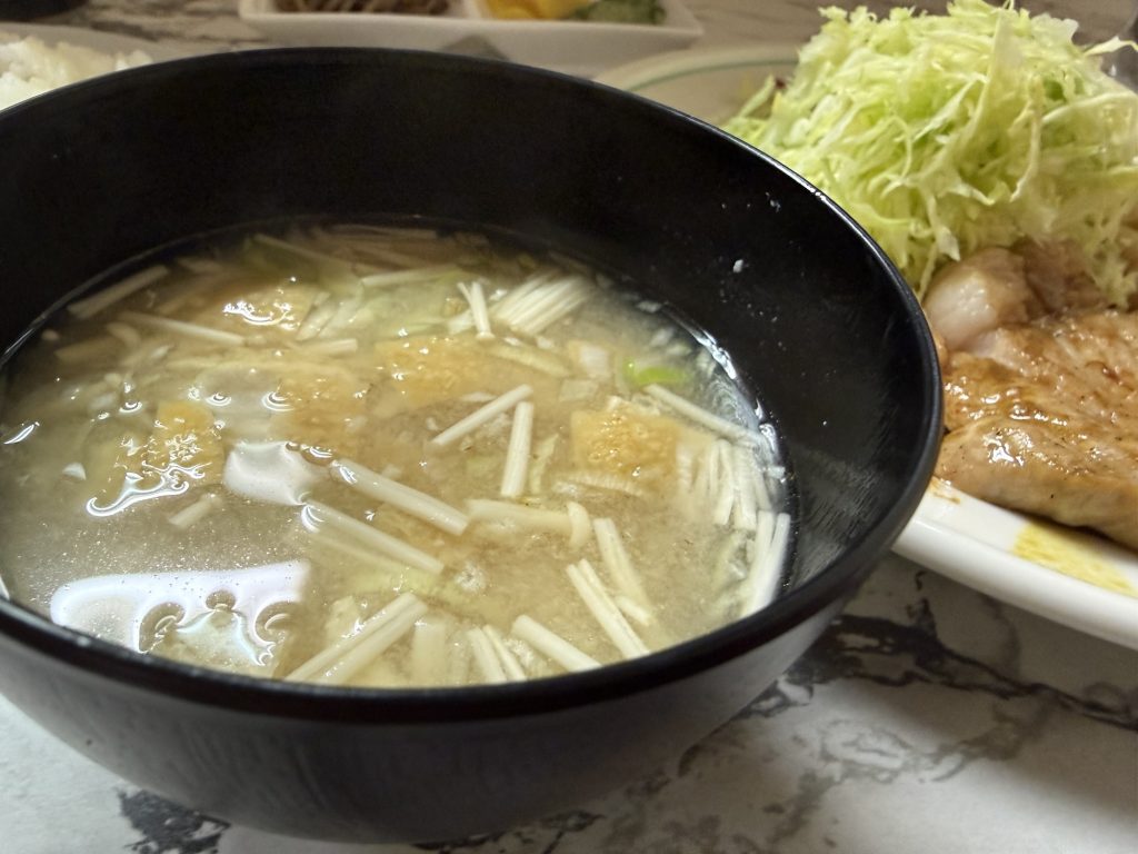 ポークステーキやわらか〜、噛むほどにお肉の旨味もあって、下味も程よく優しい味わい。キャベツたっぷりなのも嬉しい。