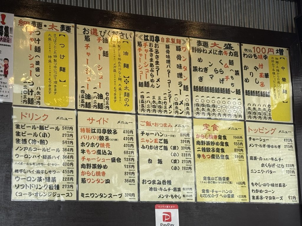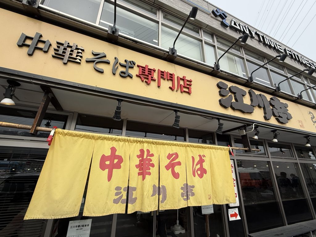 駅前にどーんと構えるお店、江川亭。小金井を本店に、東京や埼玉に店舗を構えているんだね。