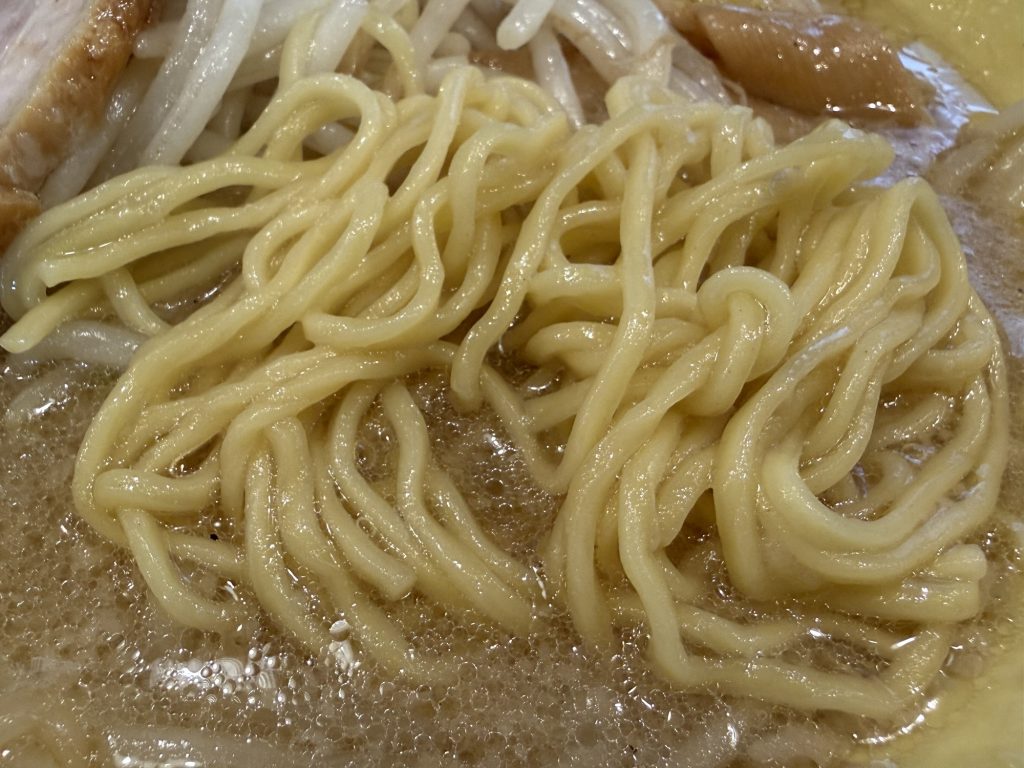 丸八製麺所の麺は、細いながらもいい弾力があるしもちっとした質感もあるね。スープにもよく絡む。