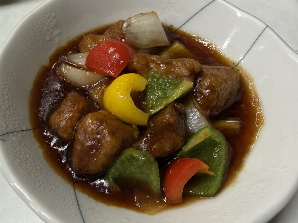 あ、酢豚が程よい酸味で美味しい。ふあっとした食感のお肉と、シャキっと歯応えのお野菜がグー。
