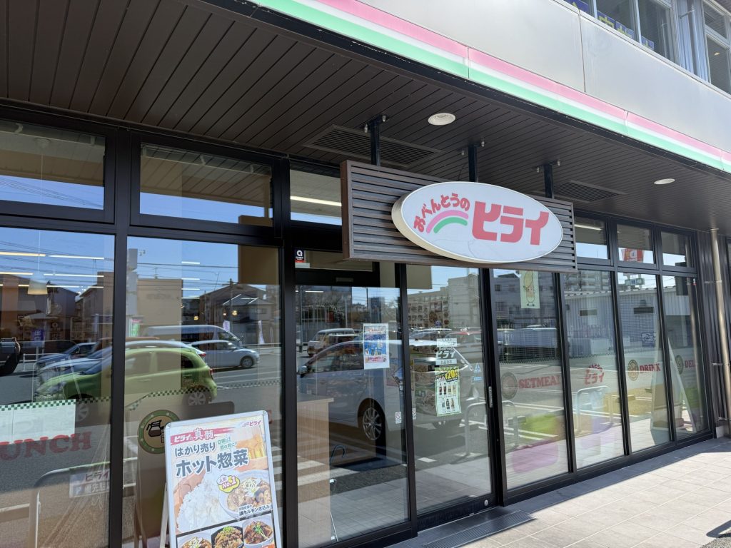 JR南熊本駅から白山通りに出て、くら寿司やマクドナルドがある交差点を北上。少し進むと、色々商業施設が現れるんだけど、今回はそのいっかくにあるおべんとうのヒライでささっとランチ。