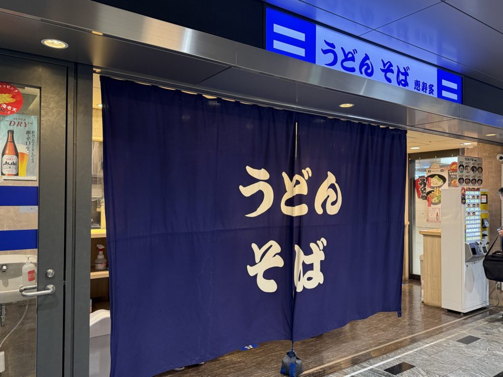 新幹線改札口内にある、うどんそば恵寿多。JRグループが運営する立ち食いの麺処。JR西日本管内だとエスタシオンカフェがあるけど、こうして場所が変われば漢字にもなれば業態も変わるんですな(笑)