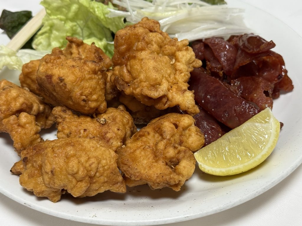 この骨抜き若鳥の唐揚げ、カリカリ衣なところにほあほあ食感の鶏が美味い。