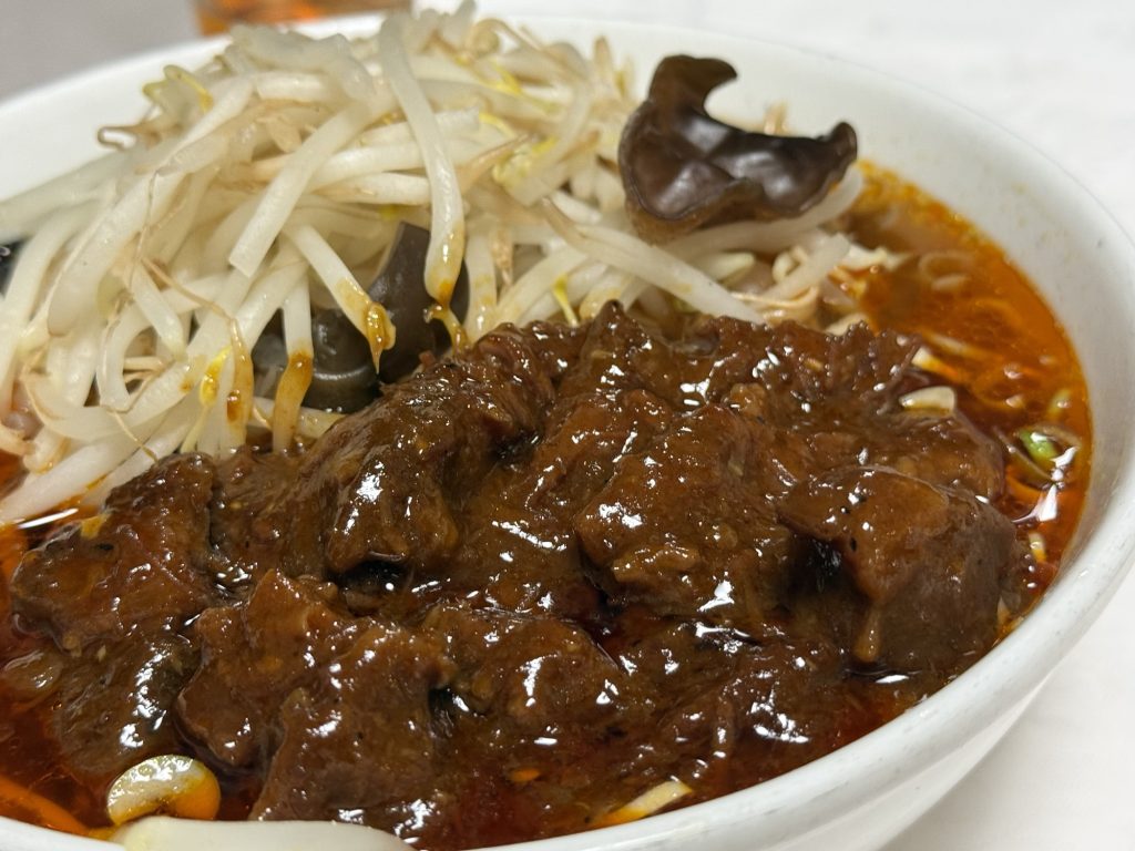 牛肉の旨さは先に書いたところだけど、旨味もそうだし、やっぱりこの八角等のスパイスの使い方で絶妙な味わい。やっぱりうまい。もやしとの相性もいいですな。