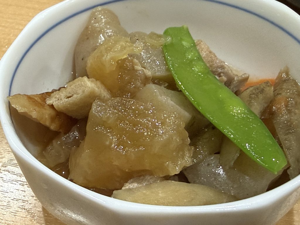 濃厚な甘みで、具材によく味が染み込んで美味しい。大根もほろほろ。