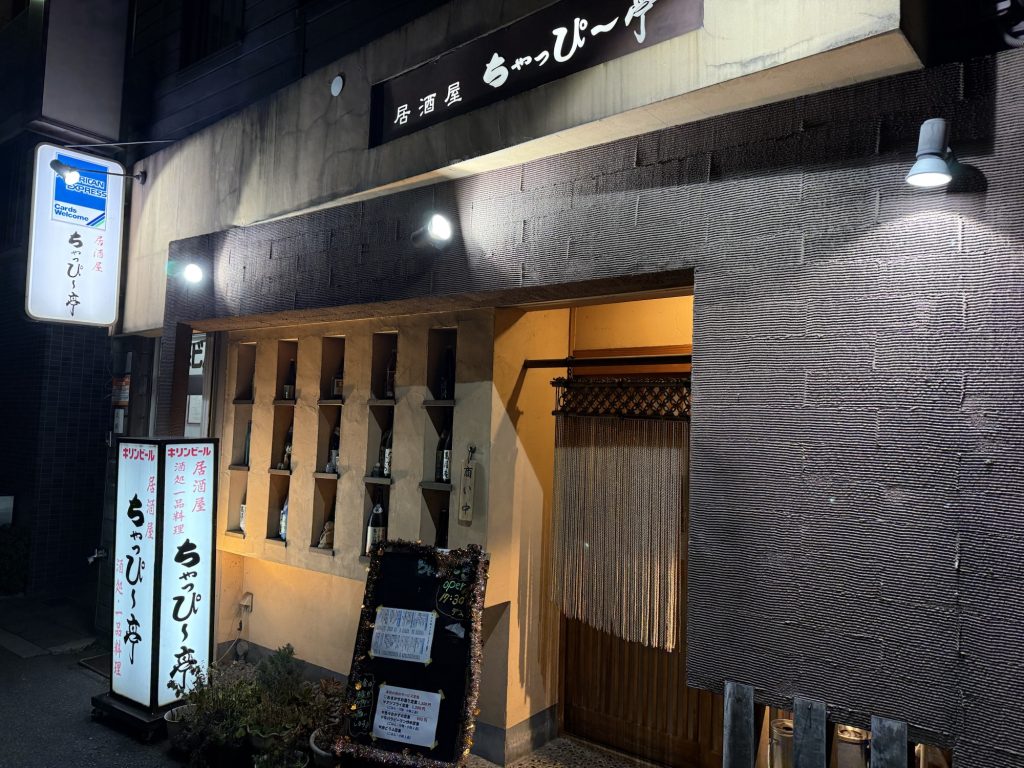 十三駅から淀川通を東へと歩いて淀川区役所へ向かう。その淀川区役所の向かいあたりにある居酒屋、ちゃっぴー亭の縄暖簾をくぐる。