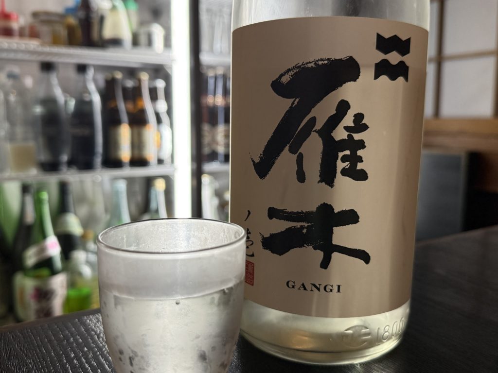 地酒もいい感じのものがありそうですよ。八百新酒造 雁木 ノ壱 直汲み 純米無濾過生原酒をハーフ(ミニグラス400円税込)で。ハーフは5勺、フレッシュでキレがいい。